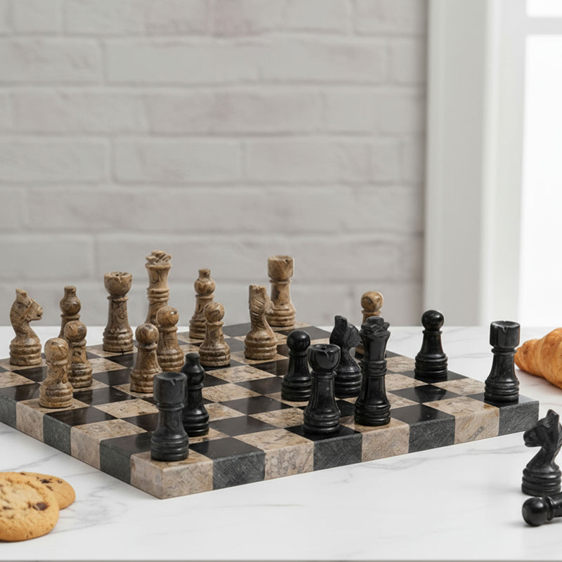 MATERIAL: Handcrafted from premium natural stone and high-quality marble. Each piece is unique due to natural variations in marble, adding beauty and charm to your chess set.