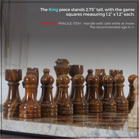 Material: This chess set is of high-quality marble onyx. Chess Board & Chess Figures are fully hand-polished.