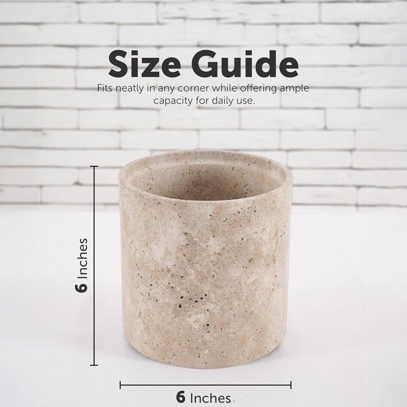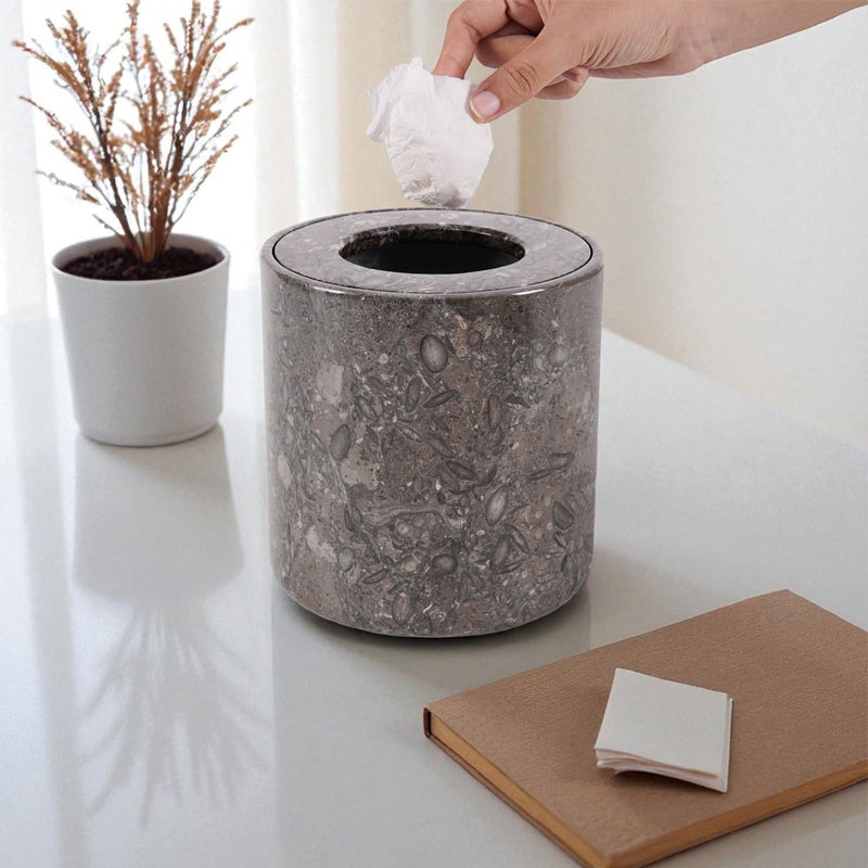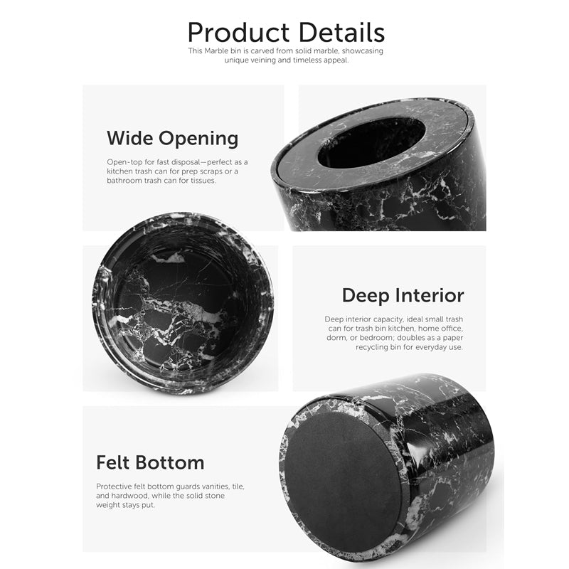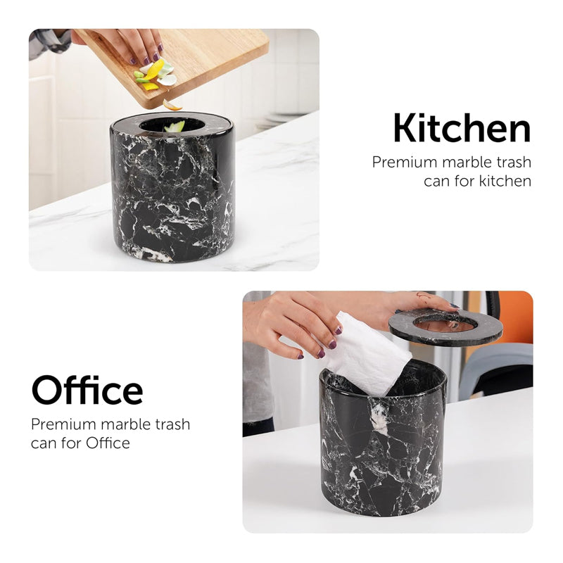 MATERIAL: Made from premium natural marble, this trash can combines durability with sophisticated style. Its genuine stone construction brings a timeless, elegant touch to bathrooms, offices, or any living space while serving as a functional waste bin.